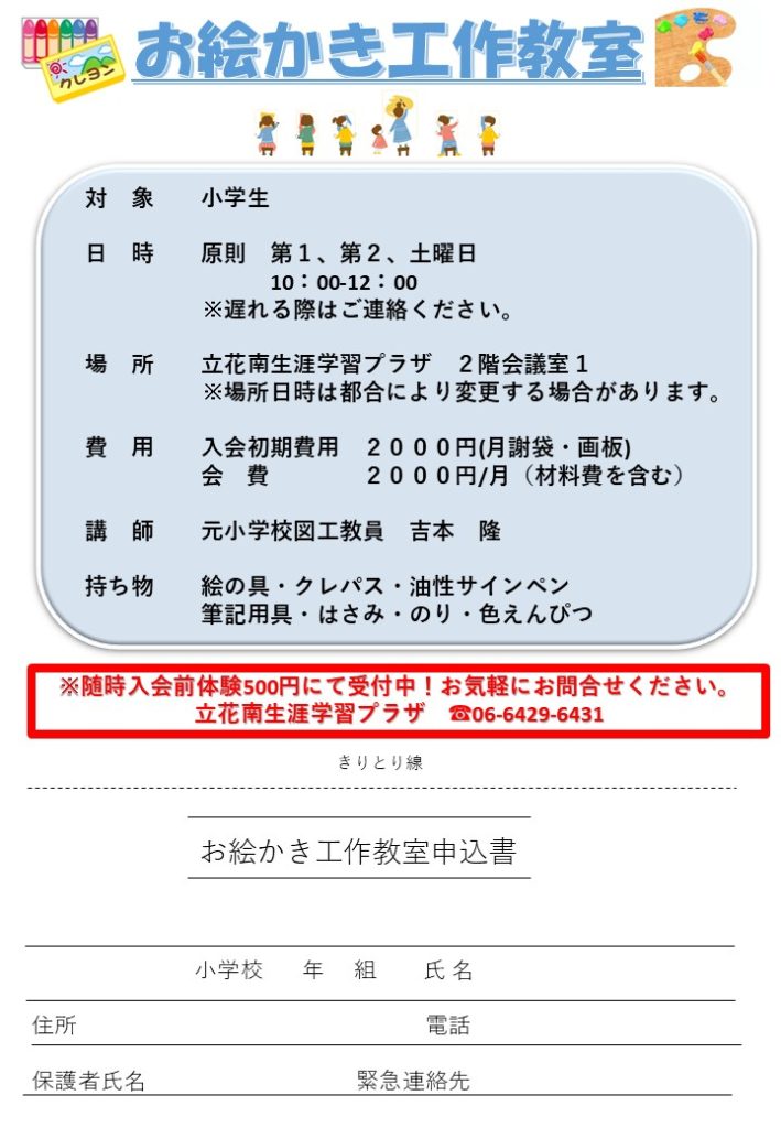 お絵かき工作教室|立花南生涯学習プラザ(尼崎市)