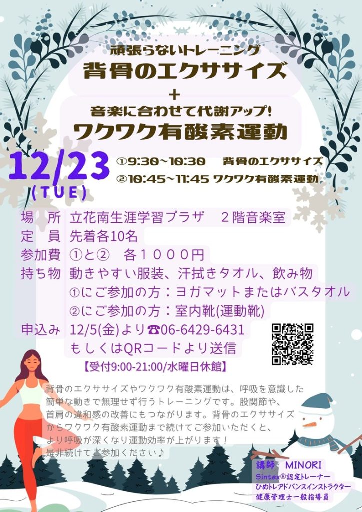 背骨のエクササイズやワクワク有酸素運動では、無理のない範囲で身体を動かし自律神経を整えていきます。こわばった首や肩、ガチガチに固まった体もスッキリ軽くなる、気持ちよくて続けたくなるようなプログラムです。背骨のエクササイズからワクワク有酸素運動まで続けてご参加いただくとより呼吸が深くなり運動効率が上がります!是非続けてご参加ください♪